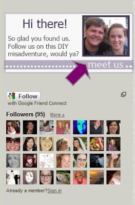 And how about a little more face time for Scott and I? Before, you could only find a nice, not-sweaty or mid-project pic of the two of us on the About page. I thought that was a little too anonymous. Ok, ok, I also didn’t like that you were more likely to see me completely disheveled and covered in paint than you were to see me cleaned up. After a little tweak, you can see our cheesy mugs fully displayed on the new home page. Maybe this will make us less like strangers and more like the nutty folks next door (…down the street… another state away).