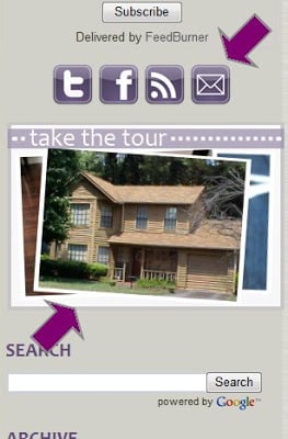 Feel like a tour? I’ve decided to make it a little easier to reach certain parts of the blog. Our House Tour page is not only accessible by the menu bar, but you can now reach it by clicking on the photobook icon as well.