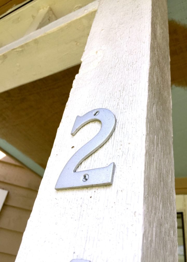 The new numbers will be the same color as the existing light fixture, but WAY more modern in style! But good thinking on the posts being a little chunkier… I don’t know if it would look right with the rest of the house or not. Perhaps I’ll need to do a follow up and try to Photoshop it or something to give myself a better idea.