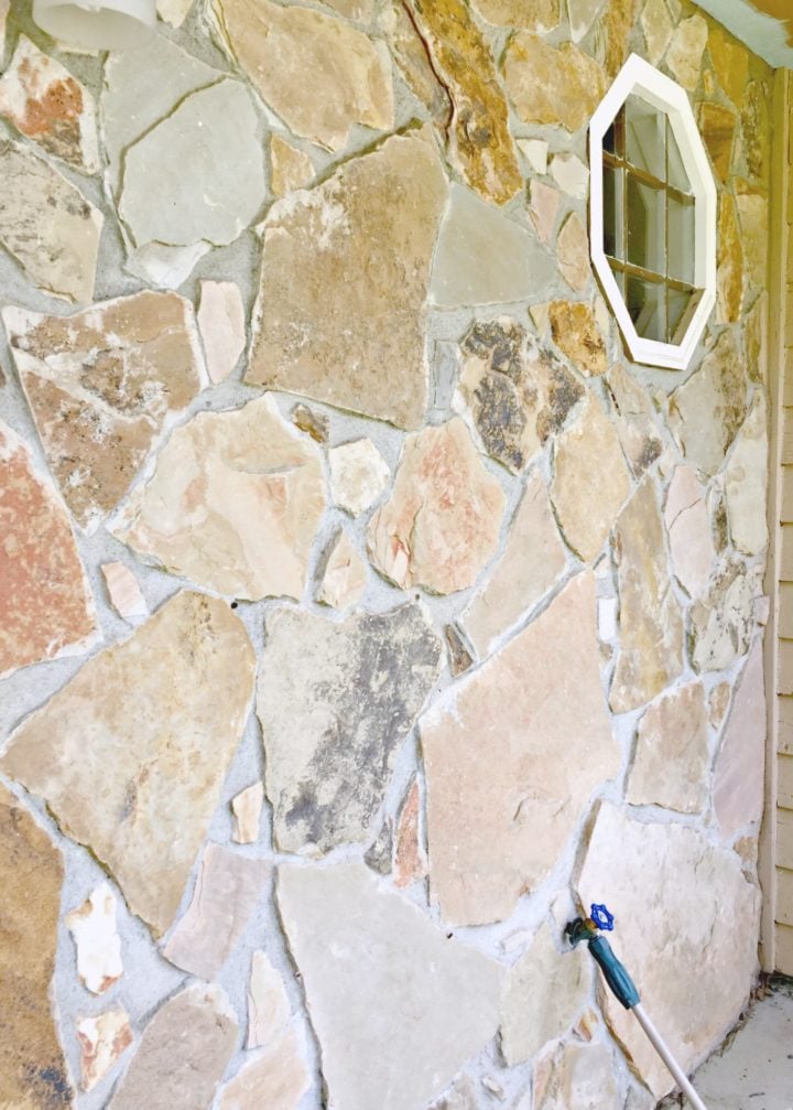Not entirely sure if this is a good idea or not, but I saw a product in the store that promises to bring out the color in the stone work and seals it. I still haven’t done enough research yet but I like the idea of making the stone really pop.