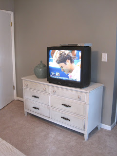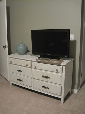 Now, the new TV has its rightful spot downstairs, and the smaller flat screen has been moved up into the bedroom. Our plan is to mount the smaller one onto the wall, but the bigger one is probably going to remain on a stand for the time being. Our future “to do” list doesn’t exactly include figuring out whether or not we can affix a mount to a wall that has a fireplace behind it.