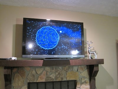 In all honesty, we’ve got more than one reason for purchasing a new TV. For one, the scale of the 32″ versus the fireplace didn’t quite look right. The mantel is thick, the rocks are large, and the TV in contrast just seemed to show too much wall space behind it. Even though the TV is plenty big enough to fit most of our needs, it still seemed puny in the spot we placed it.